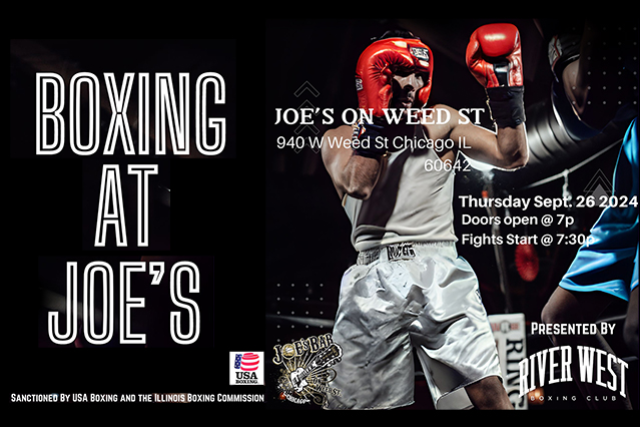 Get ready for an epic night of boxing at Joe’s on Weed St. with USA Boxing hosted by River West Boxing Club. Witness the thrill and skill of talented fighters as they go head-to-head in the ring. Join us for exciting fights and action filled entertainment!