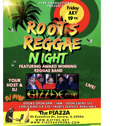 Roots Reggae Night With Gizzae Reggae Band & DJ Fyre Live at The Piazza