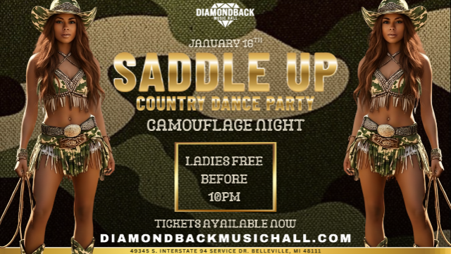 Dust off those boots and blend in to stand out! 🤠🌿 Join us at Diamondback Music Hall on January 16th for our Saddle Up: Camouflage Night! We’re spinning the best country hits all night long. Whether you’re rocking real tree or digital camo, get ready to tear up the dance floor!