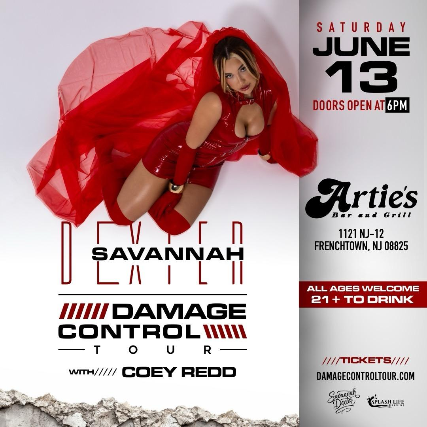 THE VIP MEET AND GREET EARLY ENTRY AND PHOTO WITH SAVANNAH TICKET WILL TAKE PLACE AT 5PM!!!! IT WILL INCLUDE A MEET AND GREET WITH SAVANNAH** A SIGNED PICTURE*** A PHOTO WITH SAVANNAH*** AND EARLY ENTRY INTO THE OUTDOOR VENUE!!!! MAKE SURE YOU HAVE YOUR PHOTO ID READY AND AFTER THE MEET AND GREET YOU WILL BE ALLOWED ACESS TO OUTSIDE STAGE BEFORE THE GENERAL ADMISSION PATRONS COME IN YOU WILL ALSO BE ABLE TO BUY MERCH BEFORE THE GENERAL PUBLIC THANKS