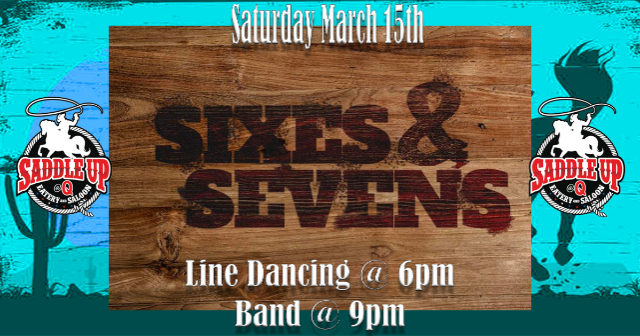 Join us on Saturday, March 15th when Sixes & Sevens perform at Saddle Up @ Q. Line dance lessons start at 6pm and the band takes the stage at 9pm.
