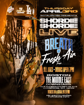 The Middle East & So Talented Presents : Shordie Shordie - All Ages, $35 Early Bird, $40 Advance, $45 Day of Show, $145 Meet & Greet, 7:00 PM Doors