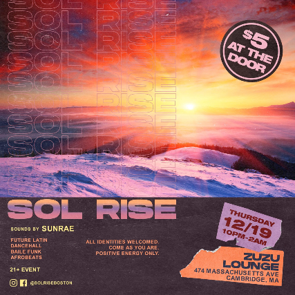 Sol Rise -> A party that celebrates music of the African Diaspora and the human spirit, Sounds by SUNRAE - 21+, $5 Advance / $5 Day of Show, 10:00 pm doors