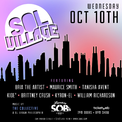 SOL VILLAGEfeat. Brittney CrushBria the ArtistKyron-ElKiDeMaurice SmithTanisha Avent& William Richardsonw/ Music by: The Collective& DJ Urban Philosopher