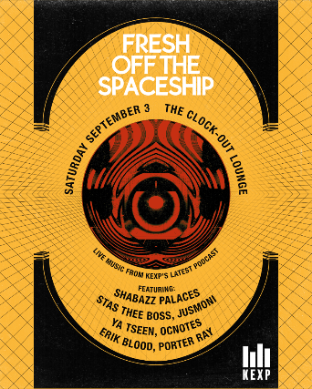 Join KEXP at Clock-Out Lounge on Saturday, September 3rd for Fresh Off The Spaceship Live, a night of performances from Black Constellation artists Shabazz Palaces, Stas THEE Boss, JusMoni, Ya Tseen, OCnotes, Erik Blood and Porter Ray. Fresh Off The Spaceship is an eleven-part podcast from KEXP hosted by Larry Mizell Jr. and Martin Douglas that tells the story of the Black Constellation collective. We’d love to celebrate the artists that inspired and helped make this podcast happen! All episodes are out now. For more information and how to listen, visit: https://www.kexp.org/fresh-off-the-spaceship/