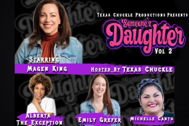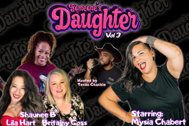 Someone’s Daughter is an all-female comedian stand up show presented to you by Texas Chuckle. As a father of 4 beautiful girls and being in the comedy game for a few years, Texas Chuckle recognizes there is too much female talent and they deserve their own show! The Texas Chuckle logo has 4 halos that represent his daughters so every volume will have 4 comedians! Hosted and presented to you by Texas Chuckle, come see this one of a kind comedy show!