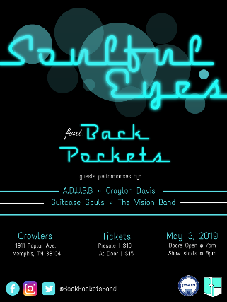 Back Pockets / A.D.U.B.B / Craylon Davis / Suitcase Souls / The Vision Band Doors Open: May 3, 2019 7:00 PM Pre-Sale/Advanded: $10 At Door: $15