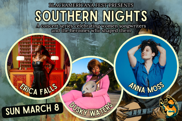 Southern Nights is an intimate songwriter series presented by BlackAmericana Fest, celebrating women songwriters, original music, and the heroines who shaped us. Curated by Dusky Waters, each evening centers storytelling, collaboration, and the living roots of American music—grounded in the South, expansive in spirit.