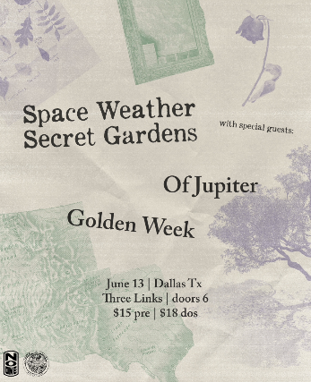 Secret Gardens & Space Weather is coming to Three Links Deep Ellum with special guests: Of Jupiter and Golden Week!