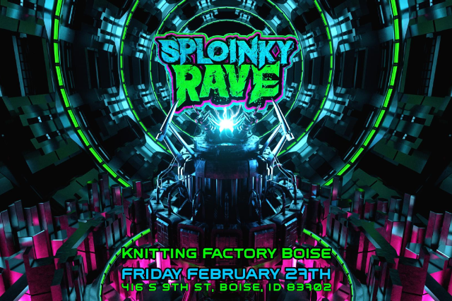 A pulse-pounding, bass-blasting experience like no other! Touring nationwide, Sploinky Rave delivers electrifying DJ sets from top-tier talent, pushing the boundaries of sound and energy. Coming to Boise on February 27th. Get ready to feel the bass in your chest and lose yourself in a night of immersive lights, unforgettable vibes, and face-melting music. Join the movement and experience the ultimate bass music party sweeping across the US!