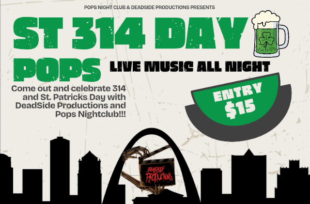 Come out and celebrate 314 and St. Patricks Day with DeadSide Productions and Pop's Nightclub!