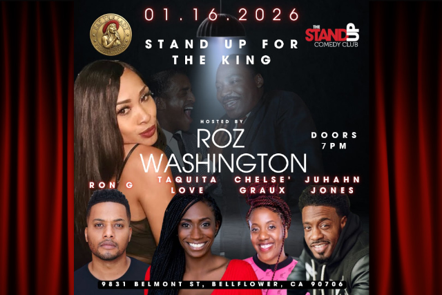 Stand Up for the King — when comedy, courage, and a holiday honoring one of history’s greatest leaders share the same stage. Hosted by Roz Washington—known for blending sharp wit with soul—this MLK Day celebration features a powerhouse lineup. Ron G brings veteran timing and fearless punchlines, Taquita Love delivers bold, high-energy truth, Chelse Graux adds clever observations with a modern edge, and Juhahn Jones ties it all together with smart, crowd-loving humor. It’s a night that honors Dr. King’s legacy while proving laughter can still move the needle. Tickets won’t last long—secure yours now and be part of a night that laughs with purpose. ************************************ SCAM ALERT – IMPORTANT TICKET INFORMATION ************************************ To protect our customers, please DO NOT purchase tickets from third-party sites such as StubHub, VividSeats, BoxOfficeTicketSales, EventTicketCenter, eTickets, Ticket-Center, TicketSales, or any other unauthorized platforms. These sellers are not affiliated with us and often charge inflated prices. All tickets purchased through our official site are WILL CALL ONLY — they will not be emailed to you. You will receive a confirmation email after your purchase, and your tickets will be available for pick-up at the door on the night of the show. We will never ask you to call a 1-800 number. If you have any questions, please call us directly at 562-202-9944. Our ONLY authorized ticketing partner is TicketWeb, which is linked directly from our website: TheStandUpClub.com. Ticket resale is strictly prohibited. Tickets suspected of being purchased for the sole purpose of resale may be canceled at the discretion of The Stand Up Club. To ensure your tickets are valid, always purchase directly from TheStandUpClub.com or TicketWeb.com. Stay safe. Don’t get scammed.