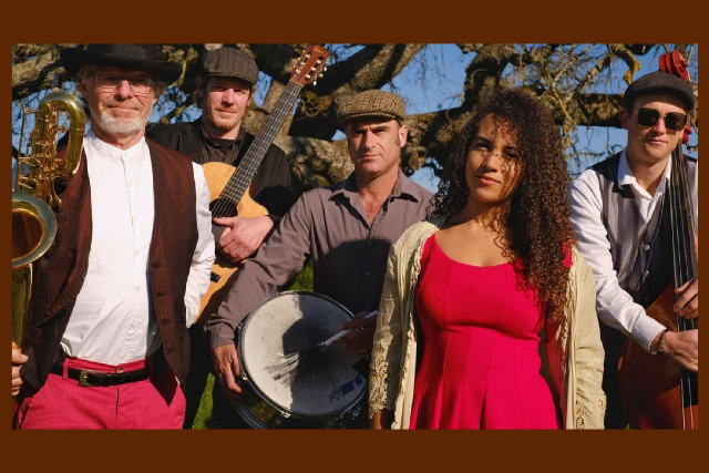 Bandjango Collectif (Formerly known as French Oak) is a wild-around-the-edges experience, melding French Gypsy Jazz & Chanson, New Orleans Jazz, Global Traditionals & Folk. Based in the San Francisco Bay Area, North Bay Native and vocalist, Stella Heath, leads this band of gypsies in their undeniably fun performances! Featuring guitar player, Ian Scherer; Reed player, Robby Elfman, on Tenor and Clarinet, as well as revolving cast of world class soloists. With their French-inspired global panoply of sounds spotlighting Heath’s magnetic vocals and the band’s tight rhythms they will transport you to lands unknown!