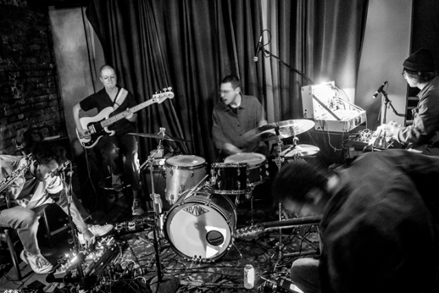 The name, SML (or Small Medium Large), exemplifies their collective nature—five solo artists working together in different configurations amongst several groups. The collective model harkens back to a lineage established by AACM and other avant-jazz groups, but may follow a formula closer to the Dusseldorf scene in the late 60s of Kraftwerk, Harmonia, Cluster, Neu! While SML’s primary configuration is quintet, you may find them in different mixes of small, medium, large, and extra large.