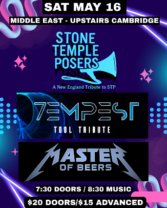 The Middle East presents: Stone Temple Posers, 7empest, Master of Beers - 18+, $15 Advance / $20 Day of Show, 7:30 PM Doors