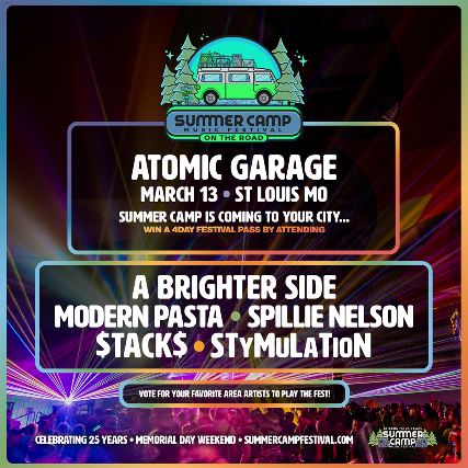 Come out and support your favorite area artists as they compete for a spot on the 25th Anniversary Summer Camp lineup and you'll be automatically entered in to win a 3-Day GA Pass to the festival just by attending!
