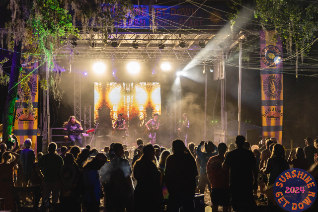 The Sunshine Get Down features a variety of classic rock, southern rock, bluegrass, blues, funk, reggae, tribute and jam bands on two alternating stages over three days, with on-site camping available. The festival boasts extensive and unique stage production with LED walls, moving head lights, lasers, ultraviolets, and scanners to engage and astound the audience, along with high quality sound design.