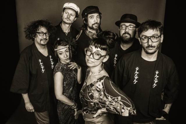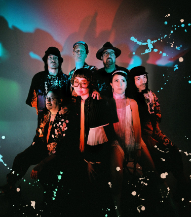 Psychedelic rock group TEKE::TEKE are intimately familiar with duality, of splitting reality between past and present, complex melodies and hushed interludes, intense action and lingering response. After building their sound through careful assembly of countless splinters of Japanese folk, psychedelia, Brazilian surf rock, and other far-flung touchstones, the Montreal-based seven-piece indulged in and learned from stretching out in free-floating experimentation on the road. Now releasing their sophomore album, Hagata (due June 9th via Kill Rock Stars), TEKE::TEKE move fully in the space between, embracing the power of mythic pairings and identities lived at once. Matching muscly intensity with moments of cloudy meditation—like a world-class high jumper finding bliss at the apex of their leap—the group frame expressive compositions with regal flute, rich horns, ecstatic guitar, and a thumping rhythm section.