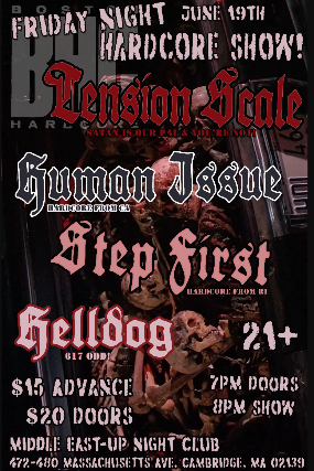 The Middle East presents: Tension Scale, Human Issue, Step First, Hell Dog - 21+, $15 Advance / $20 Day of Show, 7:00 PM Doors