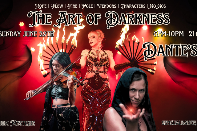 STAGE SCHEDULE 6PM Go Go Pole 7PM Rope Tastings with DJ Mother Void 8PM Flow Art with DJ Sheena Medicina 9PM Fire Acts by Natasha Riot, Ninja, & Fierce Fire Faery 10PM Sinferno Cabaret begins ($20 value) Enjoy Sinferno Cabaret late into the night!