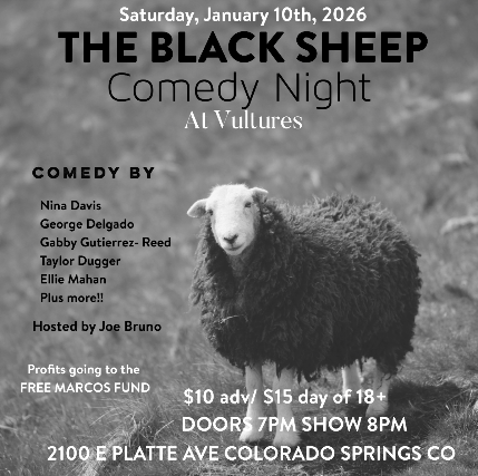 DUE TO SCHEDULING CHANGES, THE BLACK SHEEP COMEDY NIGHT IS MOVING TO VULTURES FOR ONE NIGHT ONLY ON JANUARY 10TH