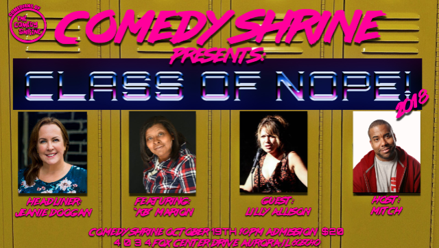 The Class of Nope brings you four comics that were teachers to school you in today's modern learning. Headlined by Jeanie Doogan you're  guaranteed a lesson in hilarity. Come on out October 19th at 10pm to get schooled.
