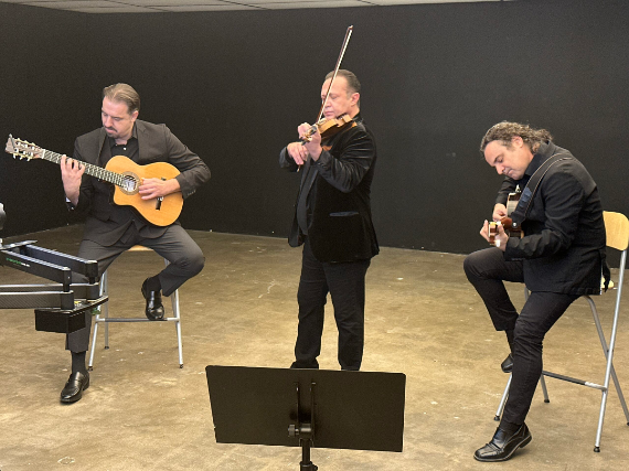 Melding diverse techniques so as to defy conventional description, they have exhilarated audiences in the United States, Latin America and Europe. Their concerts feature masterful performances by virtuoso violinist Armen Movsessian and Flamenco-inspired classical guitarists Victor Torres and Jose Prieto in original compositions that pulsate with an irresistible rhythm and breathtaking artistry.