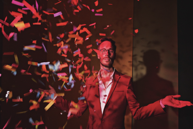 of balloons falling from the ceiling. Illuminated by sweeping disco strings, the song grooves