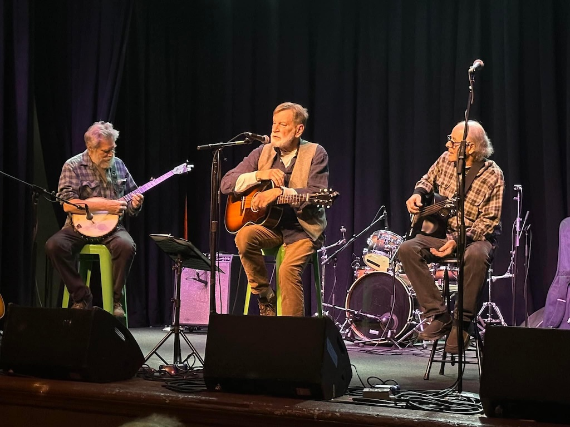 The band is Bill Watson on bass and tuba, Mark Olitsky on banjo and Mark Freeman on guitar and harmonica. Freeman also writes all the songs.