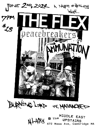 The Middle East presents: The Flex (UK), Peacemakers, Ammunation, Burning Lord, The Massacred - All Ages, $15 Advance / $15 Day of Show, 7:00 PM Doors