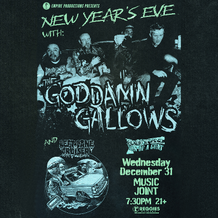 The Goddamn Gallows formed in 2004 by founding members and Lansing/Detroit natives Mikey Classic on guitar and vocals, Fishgutzzz on upright bass, and Amanda Kill on drums -replaced by current drummer Uriah Baker (aka; "Baby Genius") in 2006. The trio started out migrating around the West for a time, holing up in Hollywood squats and squalid apartments, before releasing several albums: The Gallows EP (2004), Life of Sin (2005), and Gutterbilly Blues (2007), and finally hitting the road nearly full-time to establish their presence in the psychobilly-country scene while honing their self-described "twanged-out punk rock gutterbilly". In 2009 the addition of Avery, a fire-breathing, accordion and washboard player, as well as Jayke Orvis (formerly of the .357 String Band) on mandolin and banjo, prompted The Goddamn Gallows to explore many new directions with their songwriting and in their live performances. As evidenced on their most recent 2009 album, Ghost of The Rails, and as witnessed by their spectacular and tireless live shows, The Goddamn Gallows began to forge a path founded on their very own brand of contagious primeval abandon: an unpretentious and from-the-gut carnivalesque smorgasbord of parts old time revival, circus sideshow, and good old-fashioned rock and roll. The result falls dead center into a head on collision between something like a Western honky-tonk impromptu parking lot rodeo, and Suburbia (the 1983 Penelope Spheeris cult classic film, not the location).