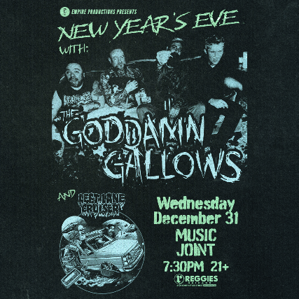 The Goddamn Gallows formed in 2004 by founding members and Lansing/Detroit natives Mikey Classic on guitar and vocals, Fishgutzzz on upright bass, and Amanda Kill on drums -replaced by current drummer Uriah Baker (aka; "Baby Genius") in 2006. The trio started out migrating around the West for a time, holing up in Hollywood squats and squalid apartments, before releasing several albums: The Gallows EP (2004), Life of Sin (2005), and Gutterbilly Blues (2007), and finally hitting the road nearly full-time to establish their presence in the psychobilly-country scene while honing their self-described "twanged-out punk rock gutterbilly". In 2009 the addition of Avery, a fire-breathing, accordion and washboard player, as well as Jayke Orvis (formerly of the .357 String Band) on mandolin and banjo, prompted The Goddamn Gallows to explore many new directions with their songwriting and in their live performances. As evidenced on their most recent 2009 album, Ghost of The Rails, and as witnessed by their spectacular and tireless live shows, The Goddamn Gallows began to forge a path founded on their very own brand of contagious primeval abandon: an unpretentious and from-the-gut carnivalesque smorgasbord of parts old time revival, circus sideshow, and good old-fashioned rock and roll. The result falls dead center into a head on collision between something like a Western honky-tonk impromptu parking lot rodeo, and Suburbia (the 1983 Penelope Spheeris cult classic film, not the location).