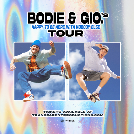 bodie & gio’s HAPPY TO BE HERE WITH NOBODY ELSE tour is high energy, crowd engaging run of shows across the western region of the United States. With gio’s fresh take on christian hip hop and bodie’s forward thinking alt-pop style, this genre clashing show packs a punch of equal parts hype and inspiration. Get your tickets quickly as capacity is very limited for this one of a kind tour.