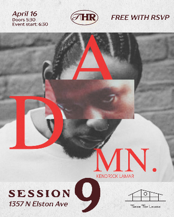 This will be the Heavy Rotation’s 9th session. In this session they are going to cover and listen to DAMN. by Kendrick Lamar in full. They will be diving into the lyrics, production and deeper meanings behind the music, in hopes to discover deeper and truer conversation. All are welcome from people that have listened to the album on repeat to people listening to it for the first time during the session.