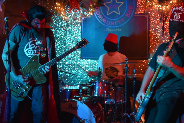 Fiend Without a Face takes their name from a 1958 English B-movie. Keeping with that theme, their live show consists of the band members wearing black pantyhose to cover their face, thumping stand-up bass, flailing guitar and pounding drums.