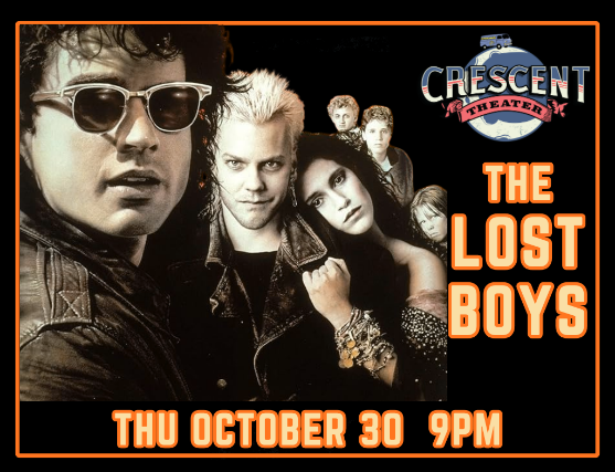 Sink your teeth into a Halloween eve you won’t forget! On October 30th, the Crescent Theater invites you to relive the 1987 cult classic The Lost Boys on the big screen. Packed with vampires, ’80s attitude, and an unforgettable soundtrack, this stylish horror-comedy has become a fan favorite for a reason. Gather your friends, embrace the nostalgia, and join us for a night of thrills, chills, and a whole lot of fun before Halloween truly begins!