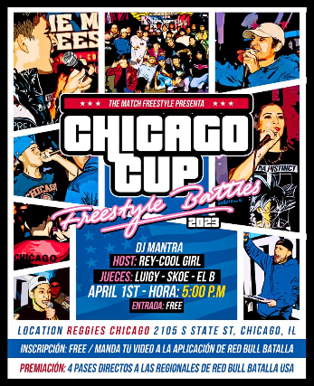 The Match Freestyle esta orgulloso de presentar el Chicago Cup, donde los finales 4 MCs viajarán a la Calificatoría Regional de Red Bull Batalla en Miami, Florida el 19 de agosto.