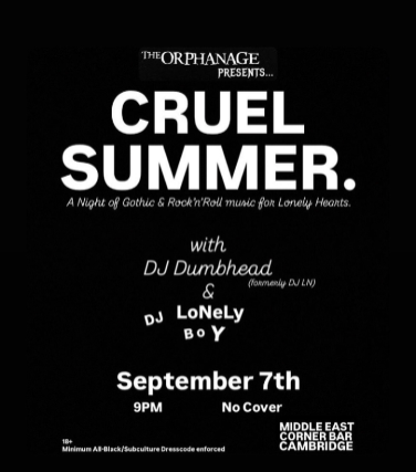 THE ORPHANAGE PRESENTS - CRUEL SUMMER : A Night Of Gothic Rock And Roll For Lonely Hearts featuring DJ DumbHead & DJ Lonely Boy