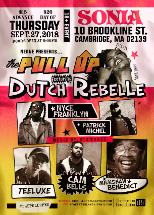 9/27/18 S: NEONE presents: The Pull Up feat. Dutch ReBelle, Cam Bells, Nyce Franklin, Milkshaw Benedict, Patrick Michel, TeeLuxe - 18+, $15 advance / $20 Day of show, 8:00 pm doors