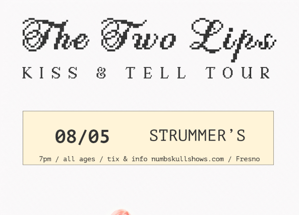 The Two Lips are a Latina/Filipina Los Angeles-based indie dream pop duo composed of best friends Jewlz and Andrea. Since forming in the fall of 2023, the pair have been writing, producing, and performing music that captures the hazy intimacy of bedroom dream pop, a sound crafted entirely in the comfort of their own rooms. The Two Lips use their music as a vessel for exploring the emotional landscape of womanhood, transforming personal stories into shimmering, ethereal soundscapes.