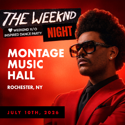 Rochester! The Weeknd Night takes over Montage Music Hall on 7/10. A full night dedicated to The Weeknd — from Trilogy and Kiss Land to After Hours and Dawn FM, plus features and deep cuts. Dark pop, late-night energy, and nonstop sing-along moments all night long.