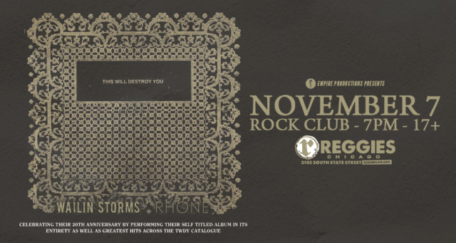 This Will Destroy You is an American experimental rock band currently based in Los Angeles, California. Formed in San Marcos, Texas in 2004, the band typically composes lengthy, atmospheric, instrumental pieces featuring layers of effects-laden guitars cascading across the dynamic range of the sonic spectrum. In addition to their studio work and performing to diverse audiences around the world, the group has composed and recorded scores for a host of prominent feature-films, documentaries, and art installations.