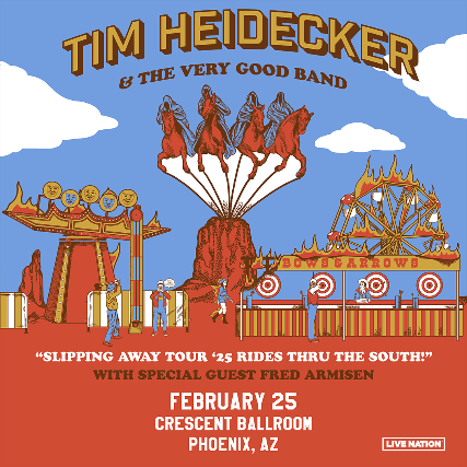 - VIP experience will include a signed copy of Tim’s newest album “Slipping Away”, access to a meet and greet and photo opp before the show, early access to the venue so you can get as close to stage as you want. Please arrive by 5:30 PM.