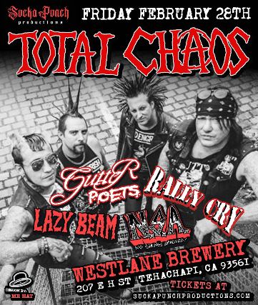 TOTAL CHAOS WITH GUTTER POETS RALLY CRY LAZY BEAM AND NSA FEB 28TH IN TEHACHIPI