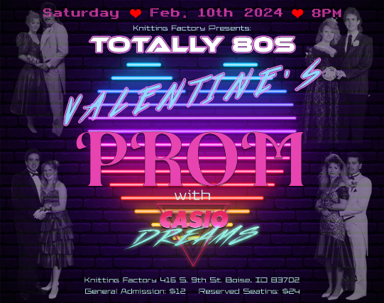 Join us for a totally 80's Valentines party with Casio Dreams! Playing three sets for everyone to dance the night away! ALL AGES SHOW
