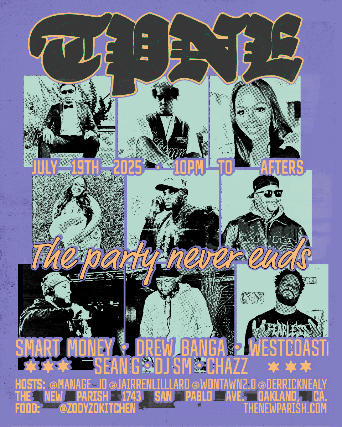 The Party Never Ends! The TPNE party returns to The New Parish for July!