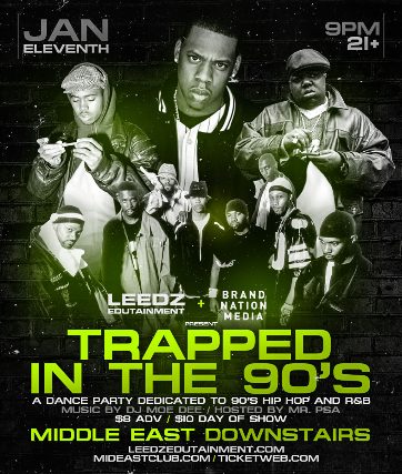 Leedz Edutainment and BrandNation present: Trapped in the 90's Dance Party with DJ Moe Dee | Hosted by Mr. PSA - 18+, $8 Advance / $10 Day of Show, 9:00 PM Doors
