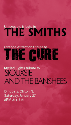 Unloveable (Tribute to The Smiths and Morrissey)Strange Attraction (The Cure Tribute)Myriad Lights (Siouxie and the Banshees Tribute)