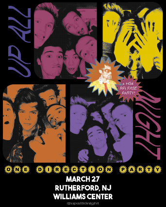 Up All Night: A One Direction Party is coming to Rutherford, NJ! Come celebrate the release of HS4 with us by listening to One Direction & solo Harry all night long at our 1D night thrown by fans, for fans.