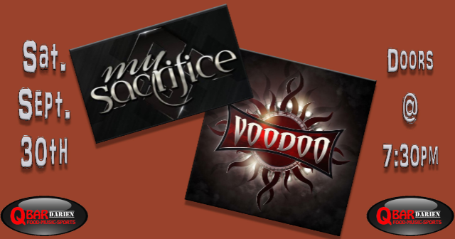 Voodoo (Godsmack Tribute) & My Sacrifice (Creed Tribute) are teaming up on Saturday Sept. 30 to bring the ROCK to Q Bar Darien! Doors open at 7:30pm and the show kicks off at 8pm. Purchase general admission tickets by Sept. 27 to take advantage of the early bird discount.